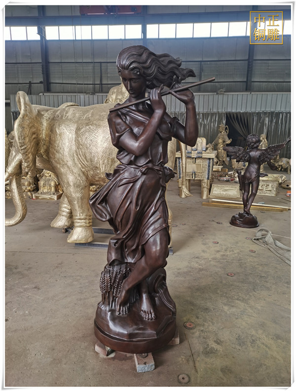 在中西方雕塑思維模式發(fā)展過程中,西方的雕塑文化形成了重視邏輯推理的思維模式,它結(jié)合古希臘的科學(xué)主義和理想主義,為雕塑藝術(shù)的典范奠定了重要基礎(chǔ);中國的雕塑文化則形成了強調(diào)直觀意向的思維方式,它通過直覺來直接體驗、感悟并把握對象.這種思維方式超越了邏輯、概念而更長于悟性.中正銅雕-西方吹笛子女銅雕塑價格、西方吹笛子女銅雕塑圖片、西方吹笛子女女銅雕塑批發(fā),中正銅雕廠制作的西方吹笛子女銅雕塑總高1.9米,我廠主營各種銅雕塑制作,包含人物雕塑、動物雕塑、銅雕佛像等等,制作工藝精湛、做工精細,質(zhì)優(yōu)價廉,是您選擇訂購銅雕廠家不錯的選擇。