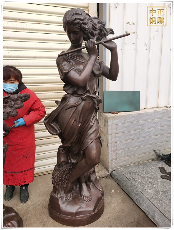 西方吹笛子女銅雕塑-總高1.9米