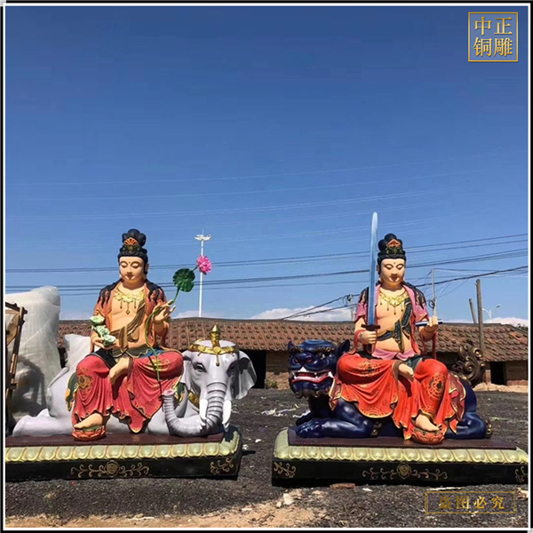 中正銅雕-生產大型文殊普賢銅佛像、生產大型文殊普賢銅佛像價格、生產大型文殊普賢銅佛像廠家,我公司集科研、開發設計、普通鑄造、一次性整體澆鑄、精密鑄造于一體。本公司技術力量雄厚,設備,不但重視中國青銅器原有的藝術風格,還繼承了文物原有的藝術品味,在繼承和發揚古老文化的同時,更深一步為新老客戶定身量制各種銅制、鐵制工藝品等產品,曾多次受到寺廟長老和美術學院教授的好評。
