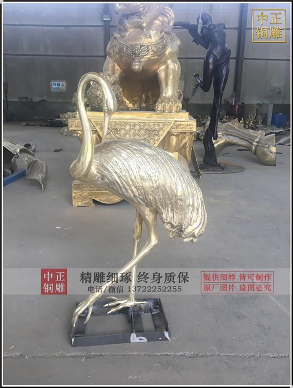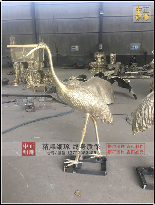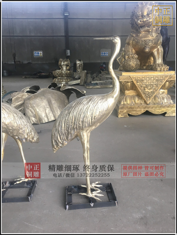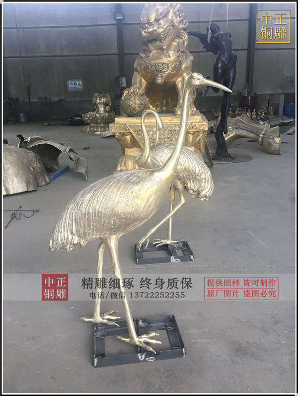 為廣州客戶制作的1米高銅鶴發貨,一共四只。黃銅制作,表面保持黃銅本色,沒做藥物上色。等待進一步烤漆做色。歡迎客戶下單定做